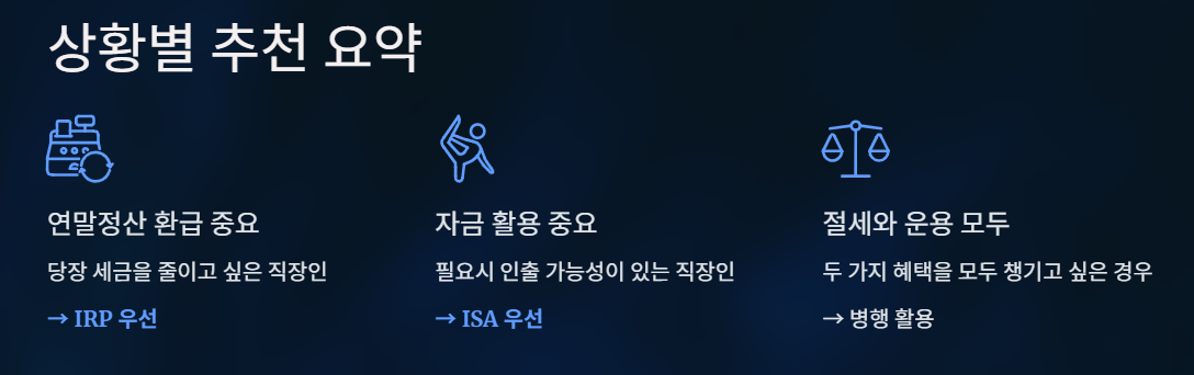 - 절세와 운용을 모두 챙기고 싶은 경우 → 병행 활용