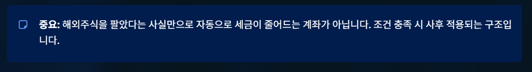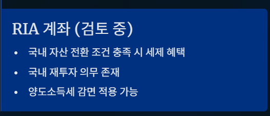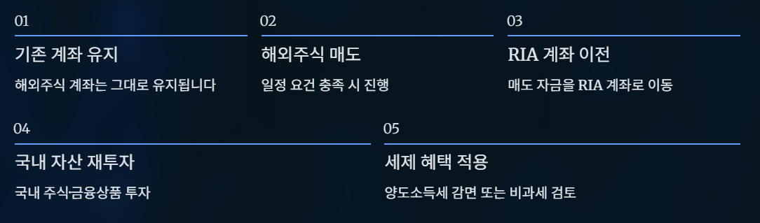 반면, RIA 계좌는 해외주식 매도 이후 자금을 국내 자산으로 전환하는 조건을 충족할 경우