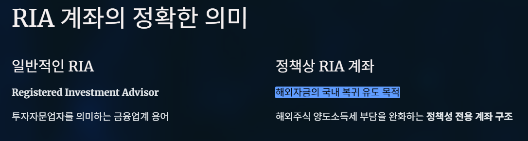 하지만 최근 기사와 정책 논의에서 언급되는 RIA 계좌는
