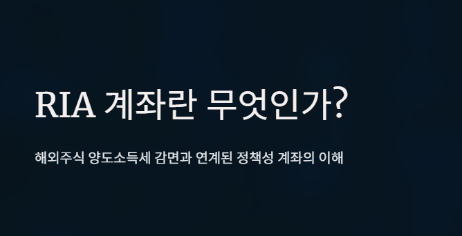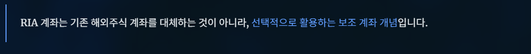 중요한 점은 RIA 계좌가 기존 해외주식 계좌를 대체하는 것이 아니라,