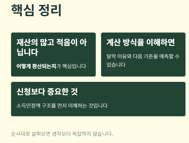 소득인정액, 재산, 금융자산 등 여러 기준이 작은 차이로도 결과를 바꿀 수 있기 때문에, 정확한 계산과 확인이 중요합니다.