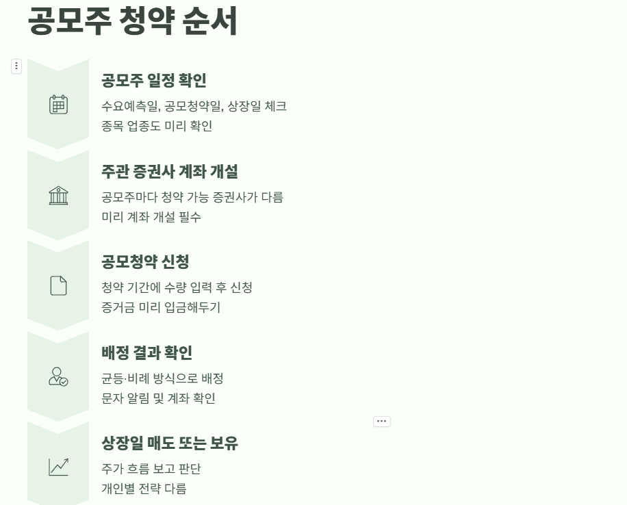 공모주 일정 확인 → 증권사 계좌 준비 → 청약 신청