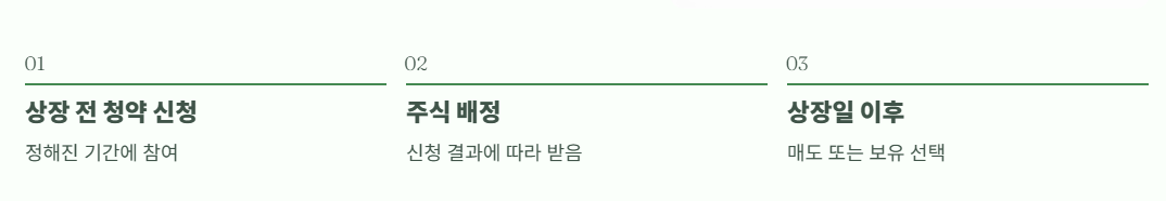 공모주 투자는 보통 아래 순서로 진행됩니다.