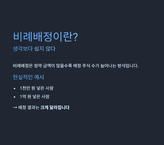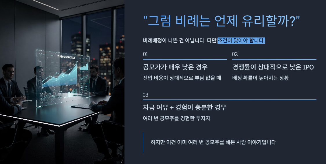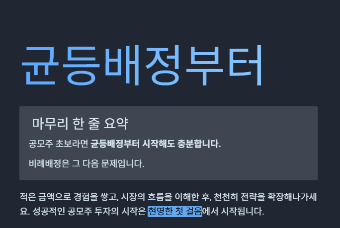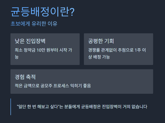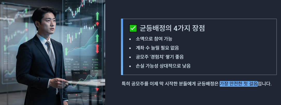 공모주 초보라면 대부분 ‘균등배정’이 더 유리합니다.