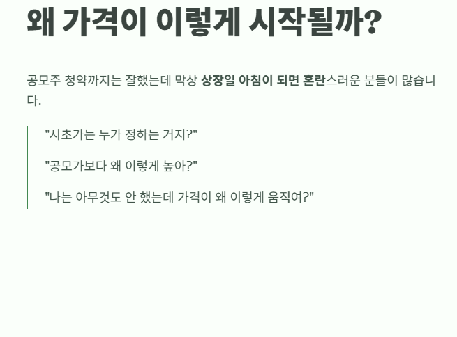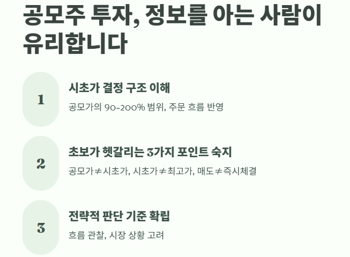 “공모주 투자, 시작 전에 시초가가 어떻게 형성되고 가격이 결정되는지를 정확히 확인하고 시작하시는 방법을 추천합니다.