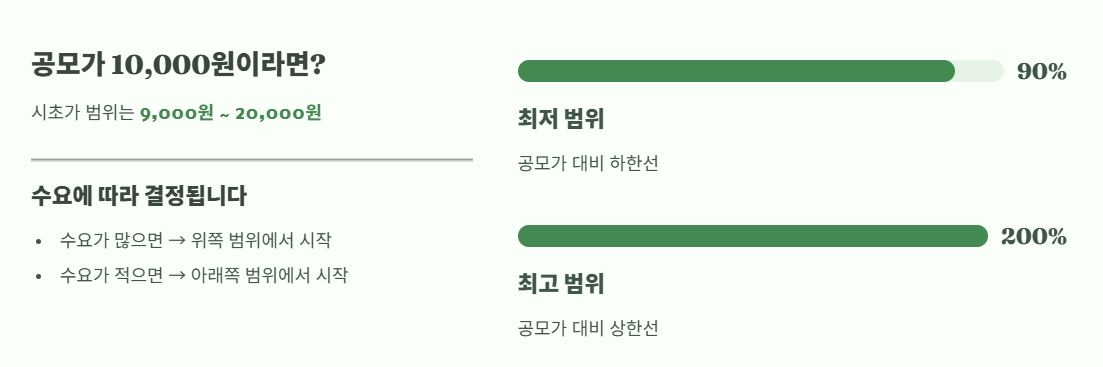 공모가의 90% ~ 200% 범위 내에서 시초가 결정