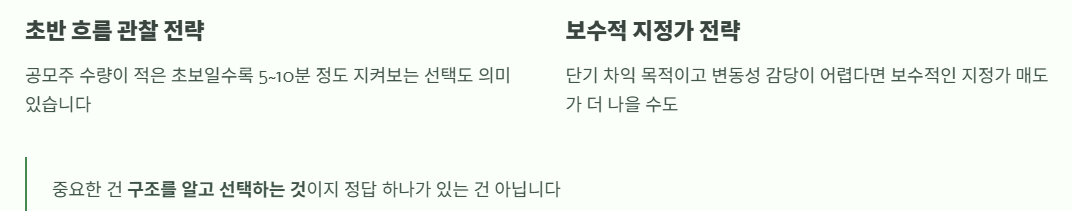 2026.01.05 - [분류 전체보기] - 공모주 시초가 결정 구조 총정리|초보가 헷갈리는 이유 3가지