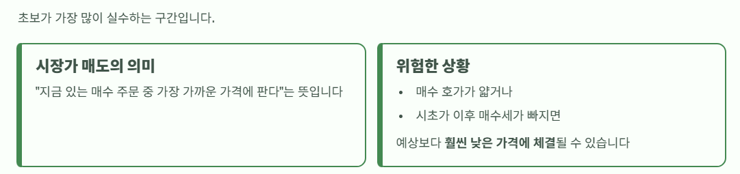 시장가 매도를 넣었을 때 (초보 주의)