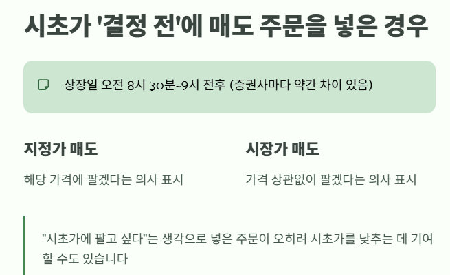 시초가가 결정되기 전과 후에 매도 주문의 의미가 달라집니다.