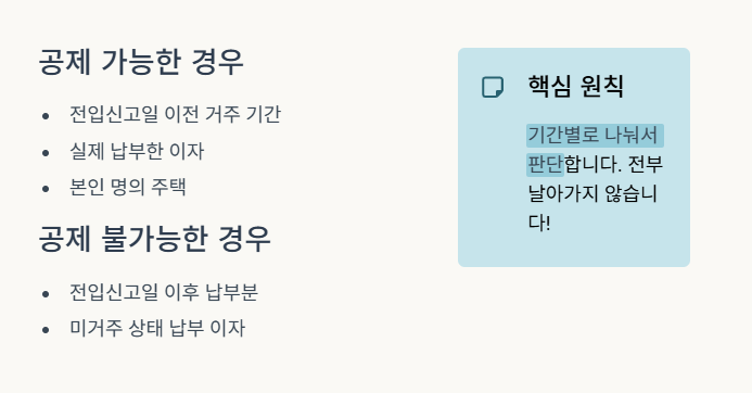 전입신고 이전 실제 거주 기간 → 공제 가능