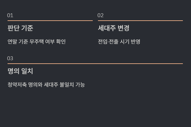 - 적용 시기: 연말 기준 무주택·세대판정 중요