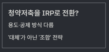 ✔ 청약 + IRP + ISA 조합이 절세 효율 높음