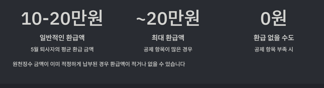 - 현실적으로 5월 퇴사자는 대부분 10~20만 원 소액 환급