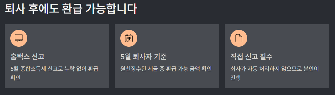 퇴사자도 홈택스에서 5월 종합소득세 신고를 하면 누락 없이 환급 확인이 가능합니다.