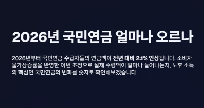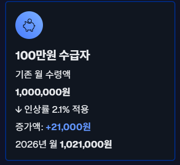 2026년부터 국민연금을 받고 있는 수급자들의 연금액이 전년 대비 2.1% 인상됩니다.