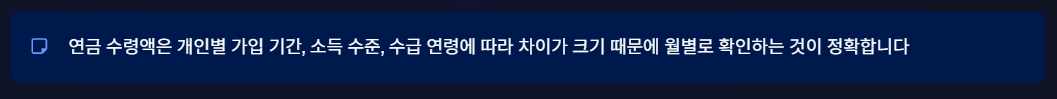 연금 수령액은 개인별 가입 기간, 소득 수준, 수급 연령에 따라 차이가 크기 때문에 월별로 확인하는 것이 정확합니다.