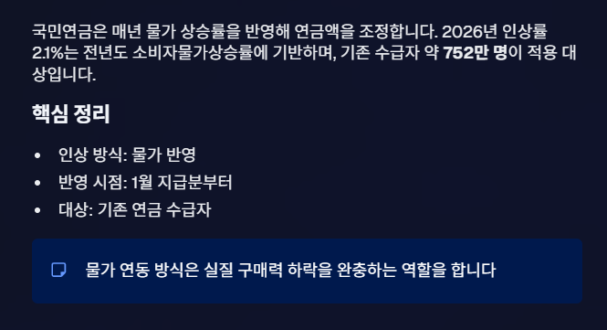 2026년 국민연금 인상률: 소비자물가 +2.1%