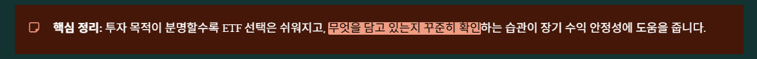 투자 목적이 분명할수록 ETF 선택은 쉬워지고, 무엇을 담고 있는지 꾸준히 확인하는 습관이 장기 수익 안정성에 도움을 준다.