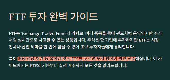 특히 배당·성장·채권 등 목적에 맞는 ETF를 고르면 투자 방식이 훨씬 단순해진다.