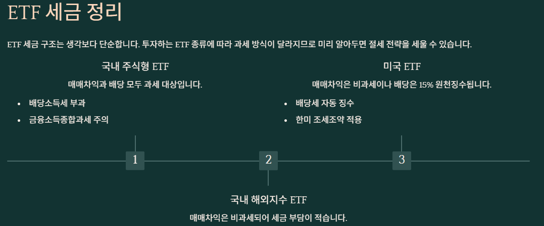 - 미국 ETF: 매매차익 비과세, 배당은 15% 원천징수