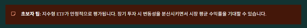초보자에게는 지수형 ETF가 안정적으로 평가된다. 장기 투자 시 변동성을 분산시키면서 시장 평균 수익률을 기대할 수 있다.