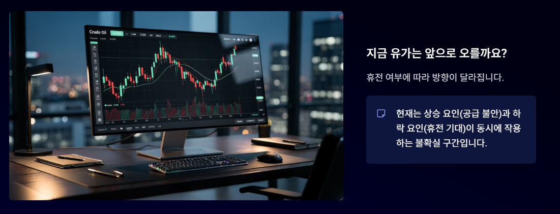 특히 호르무즈 해협 같은 주요 원유 수송로가 변수로 작용하기 때문에, 상황 변화에 따라 유가는 빠르게 움직일 수 있습니다.