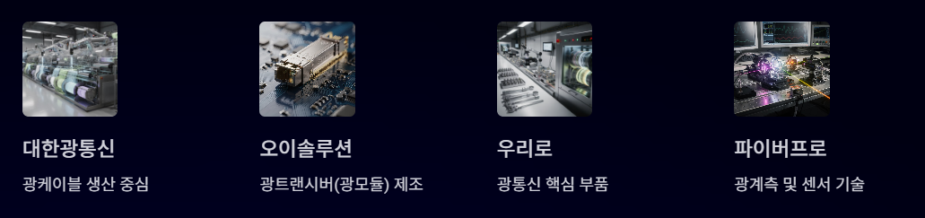 각 기업은 광통신 생태계 내에서 역할이 다르기 때문에 단순 비교보다는 구조를 이해하는 것이 중요합니다.