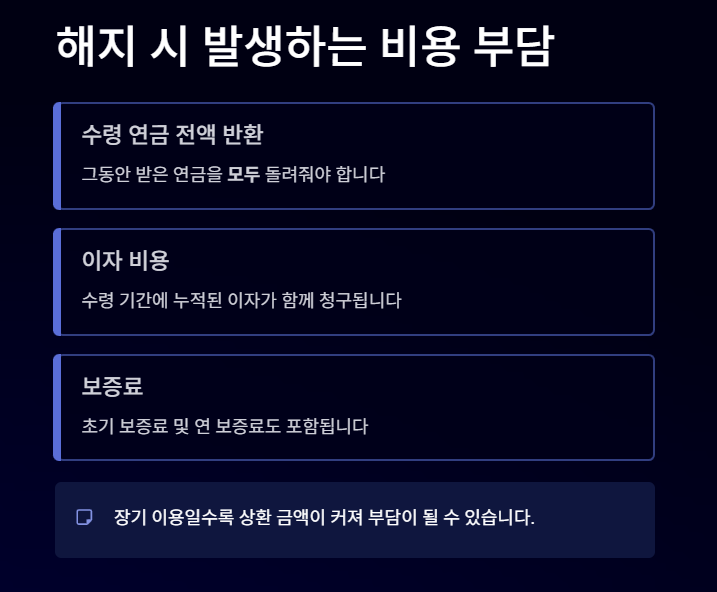 또한 해지 과정에서 발생하는 금융 비용까지 고려하면 실제 손에 쥐는 금액은 예상보다 줄어들 수 있습니다.