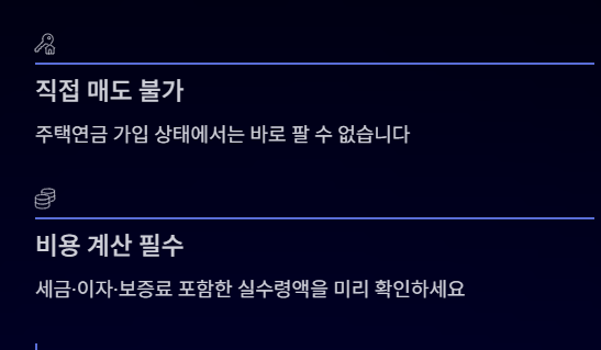 결론부터 말씀드리면, 주택연금 가입 상태에서는 바로 매도가 불가능하며 ‘해지 후 매도’라는 절차를 거쳐야 합니다.