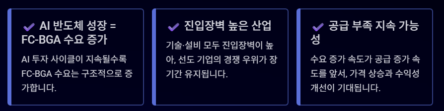 ✔ AI 반도체 성장 = FC-BGA 수요 증가