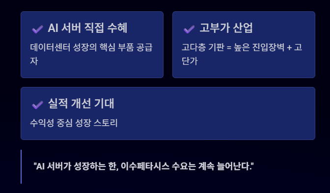 “AI 서버가 성장하는 한, 이수페타시스 수요는 계속 늘어난다.”