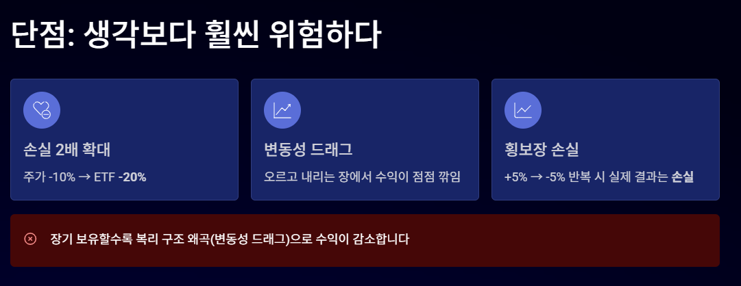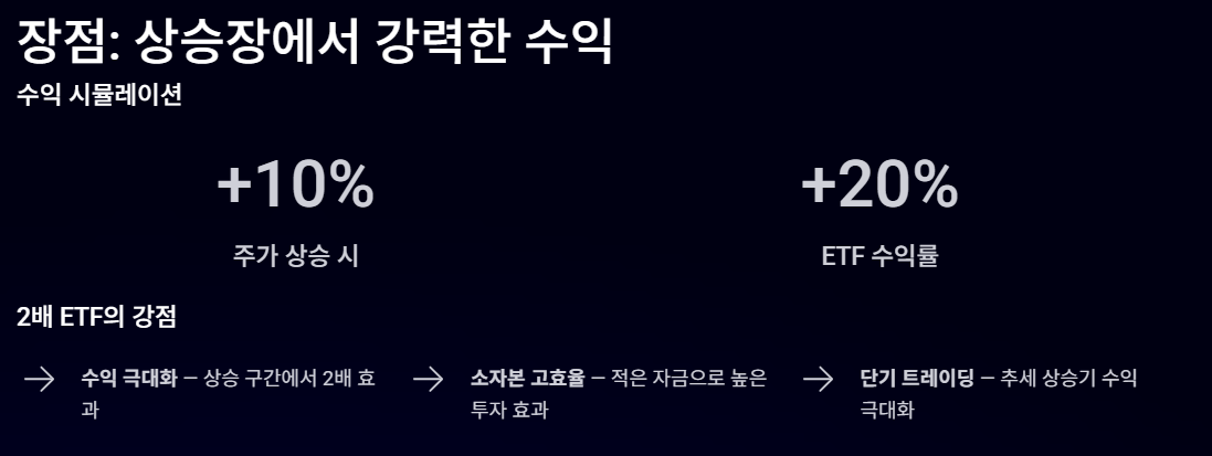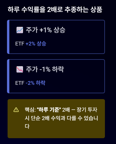 - 주가 +1% 상승 → ETF +2% 상승